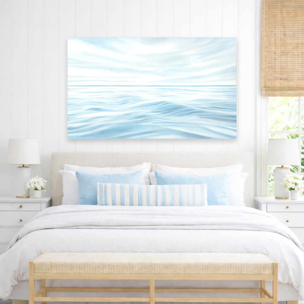 Meet Serenity - a serene 60 x 36” oil seascape designed to bring the quiet calm of the open sea indoors. Layers of soft meditative blues create a palette that feels grounding and peaceful...perfect for anyone who finds their peace out on the water.