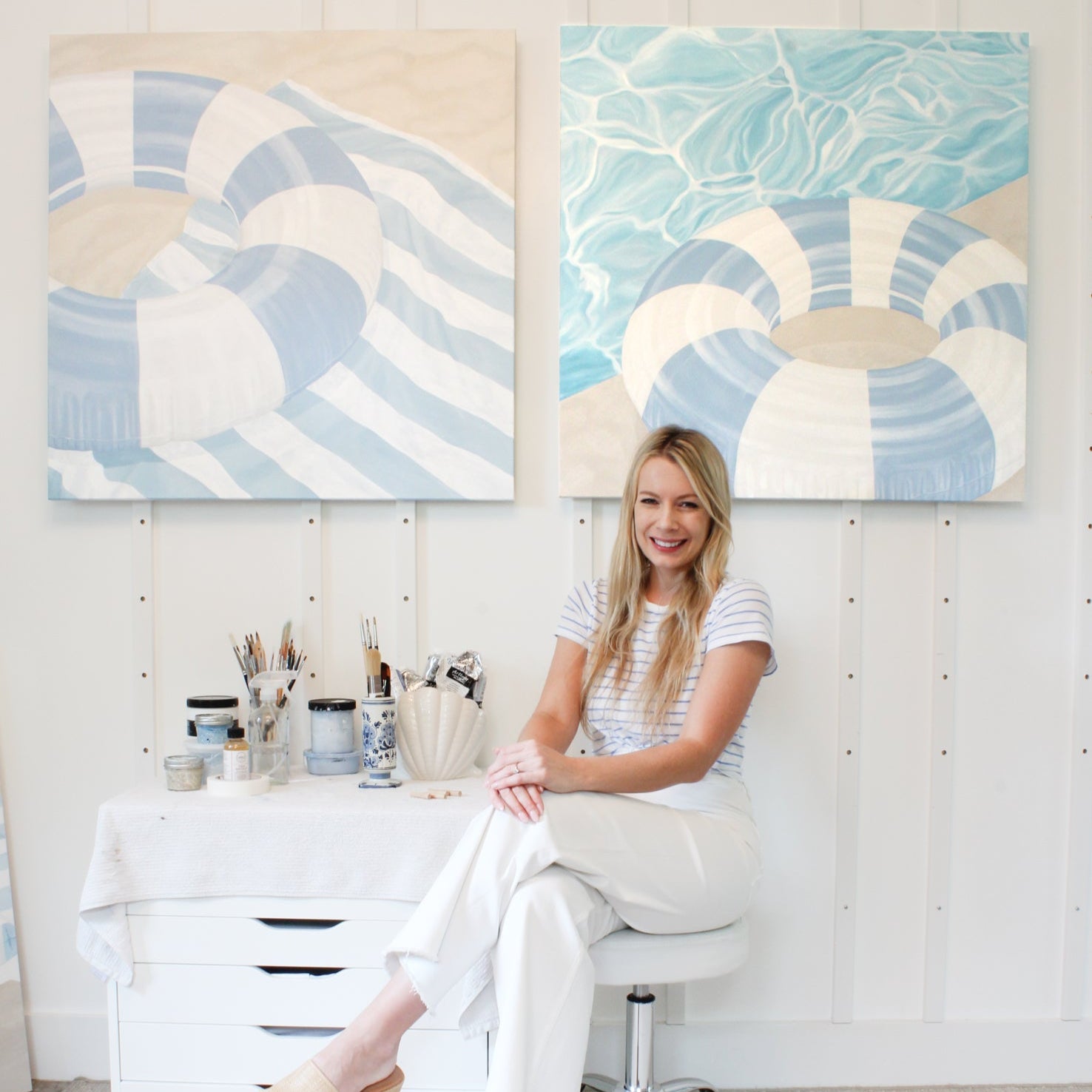 Original canvas painting 'Poolside' by artist, Laurie Duncan. Pairs beautifully with 'Beachside' for a stunning coastal statement.