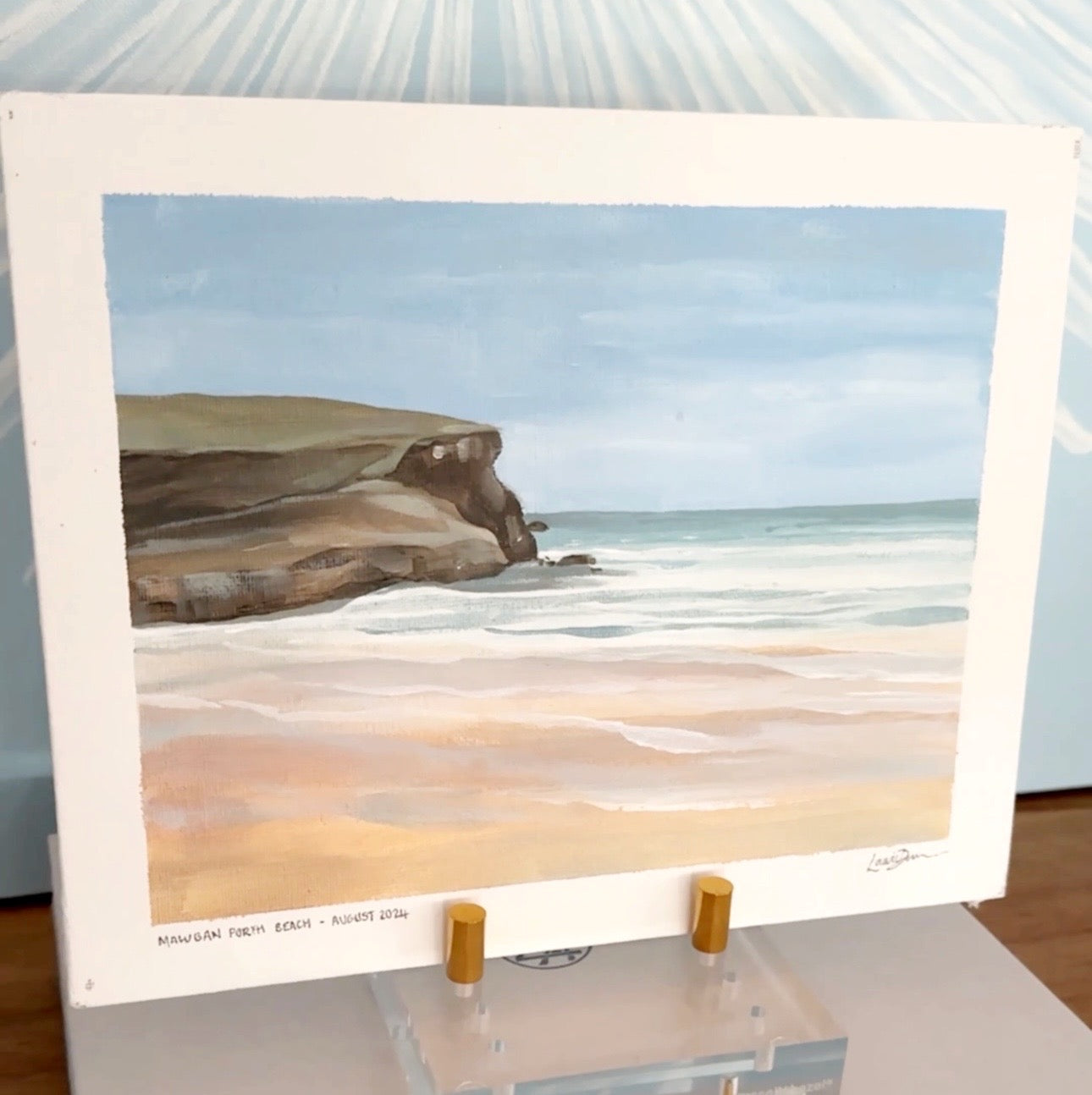 Experience the breathtaking beauty of Cornwall with this original acrylic painting, 'Ocean's Edge,' created by artist Laurie Duncan. Painted en plein air during Laurie's recent trip to the stunning Cornish coast, this piece captures the crystal-clear waters and dramatic clifftops that make Cornwall an artist's dream destination.