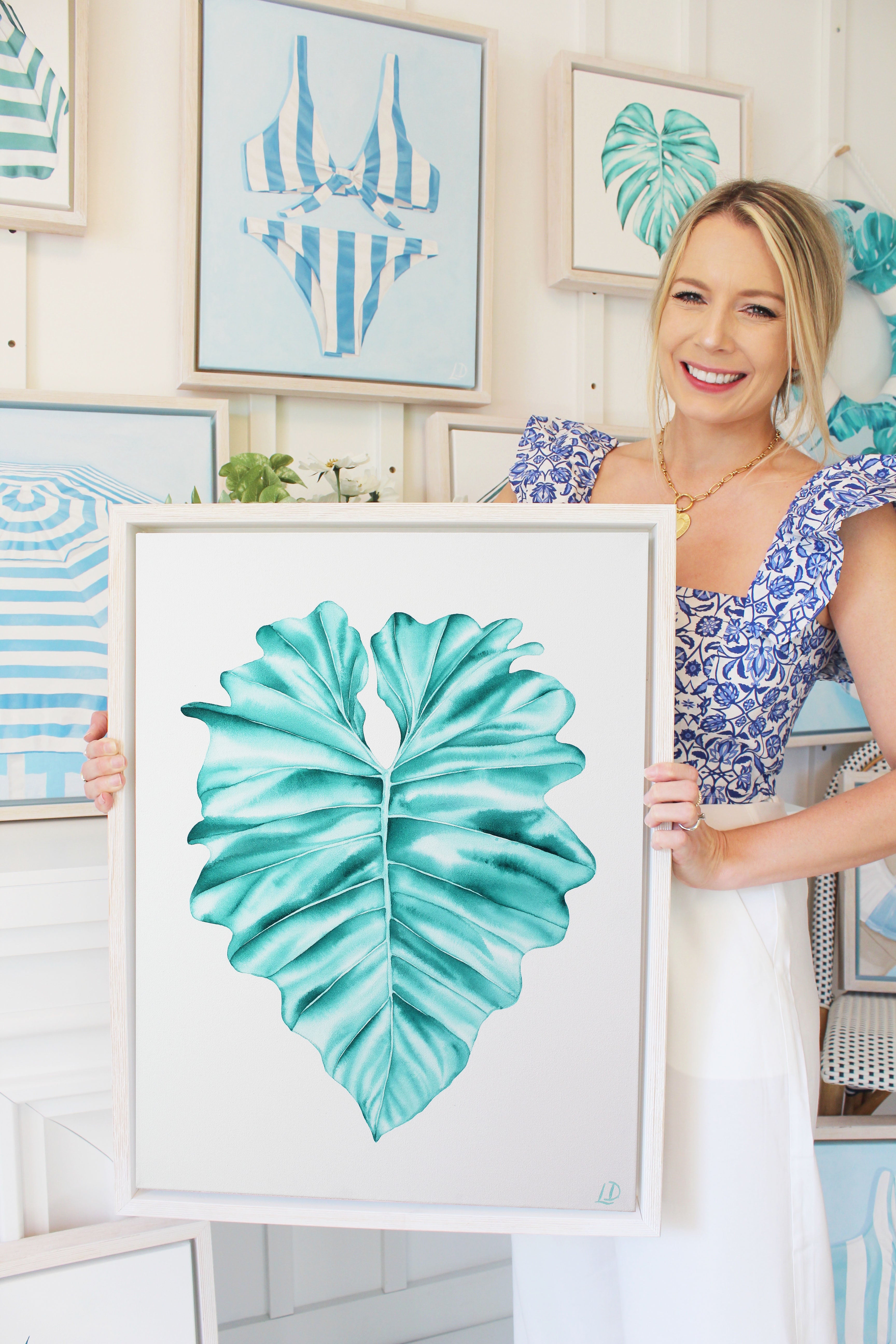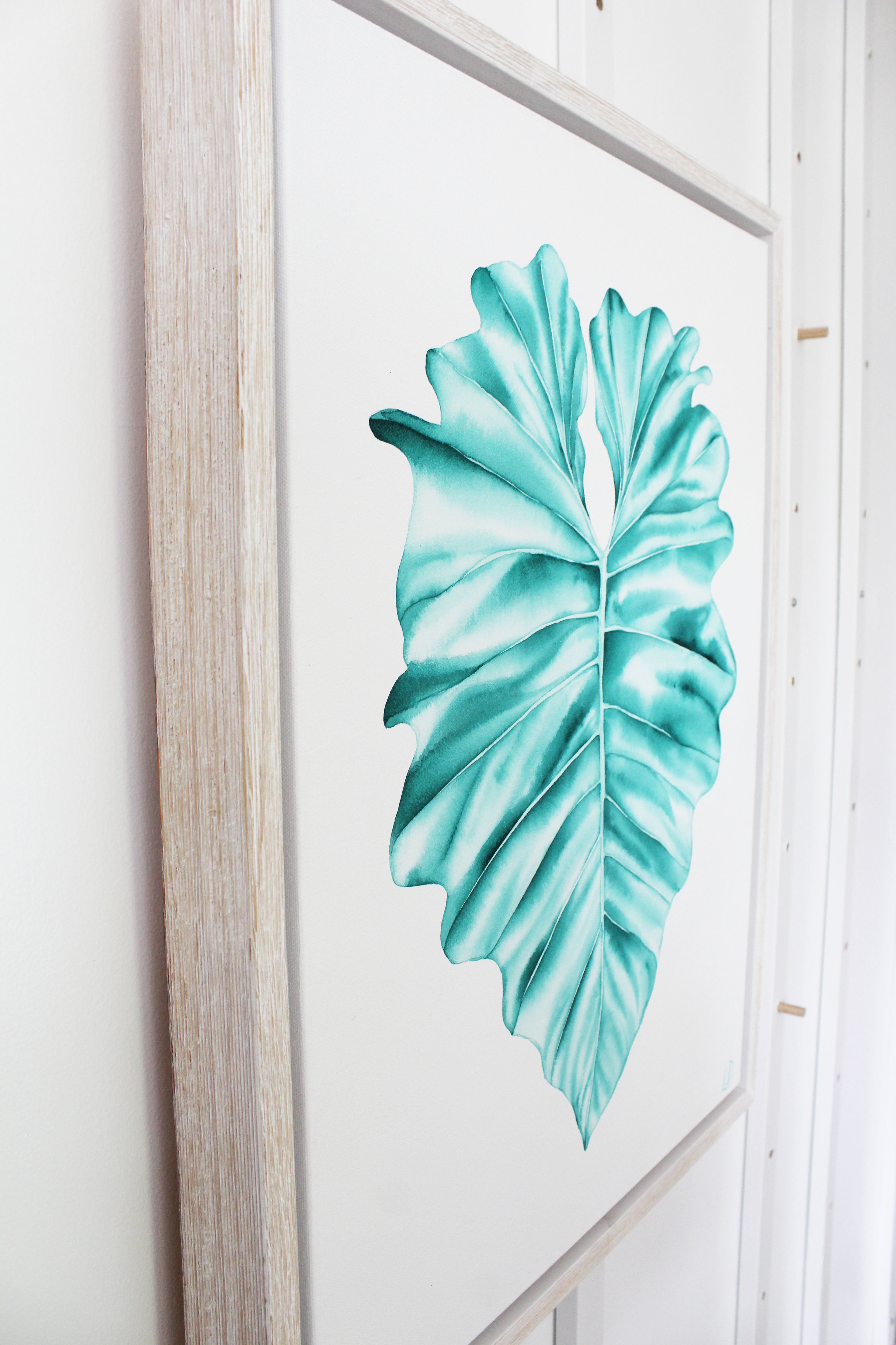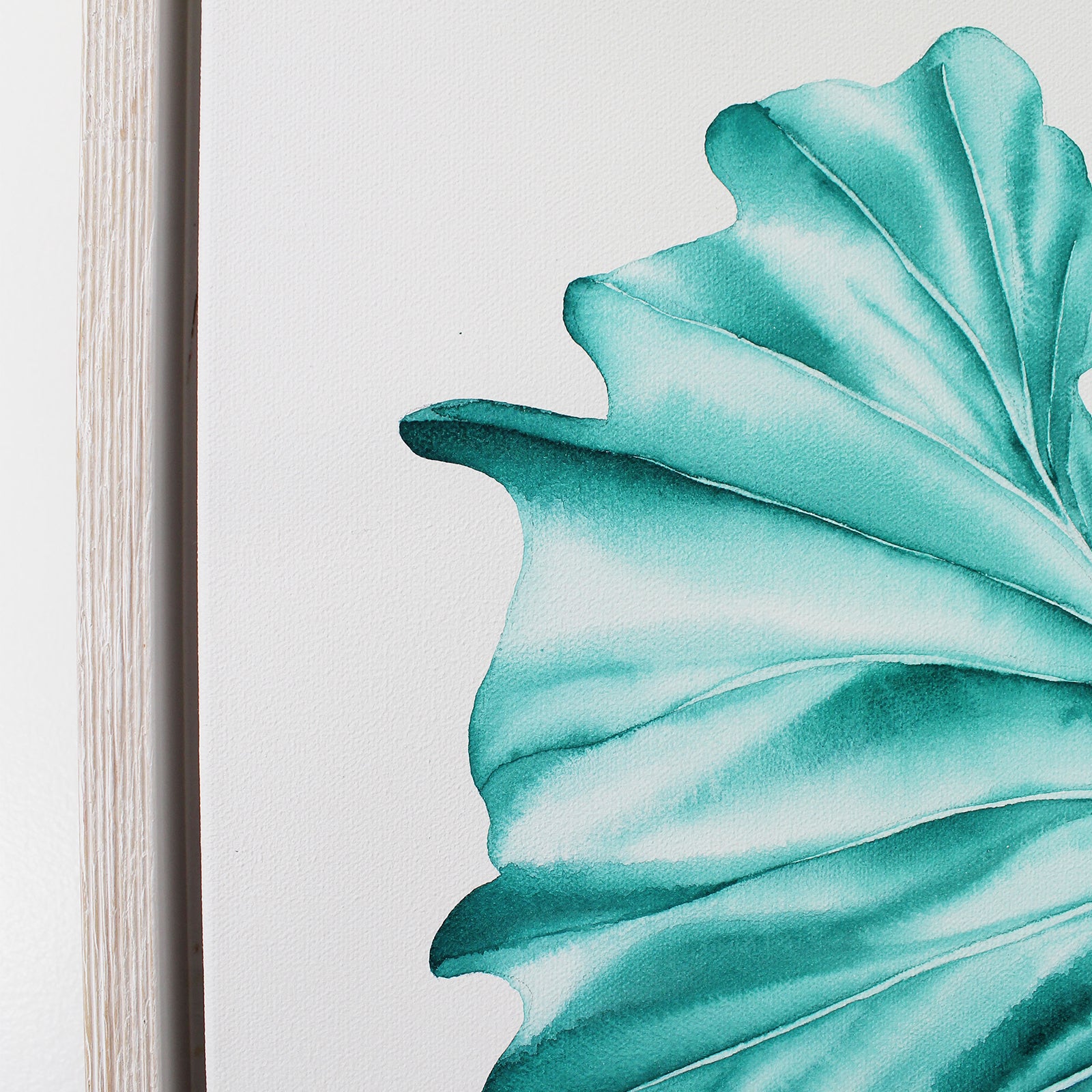 Watercolor painting on a gallery wrapped cotton canvas. Framed in a coastal wood floating frame. Please contact for framing options.