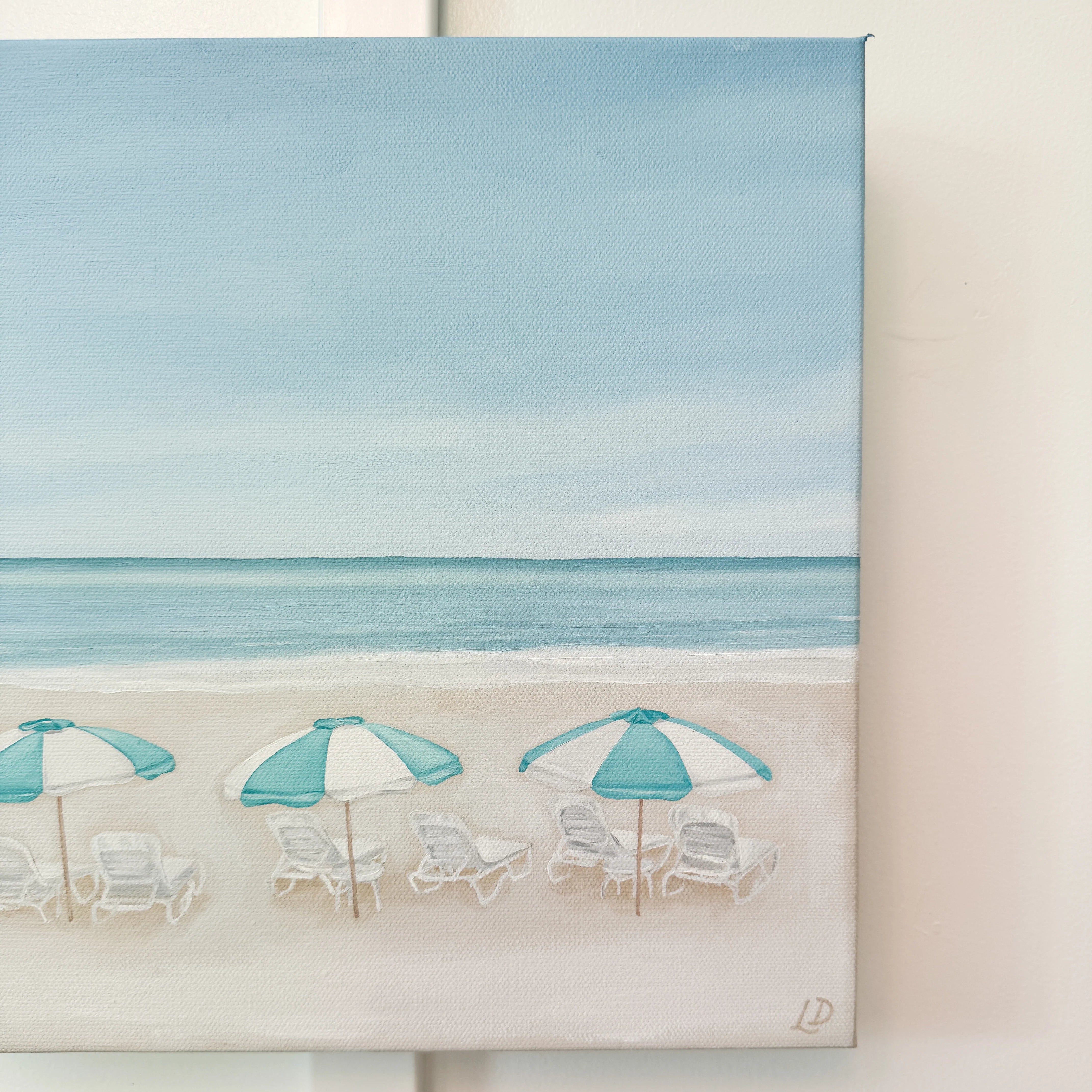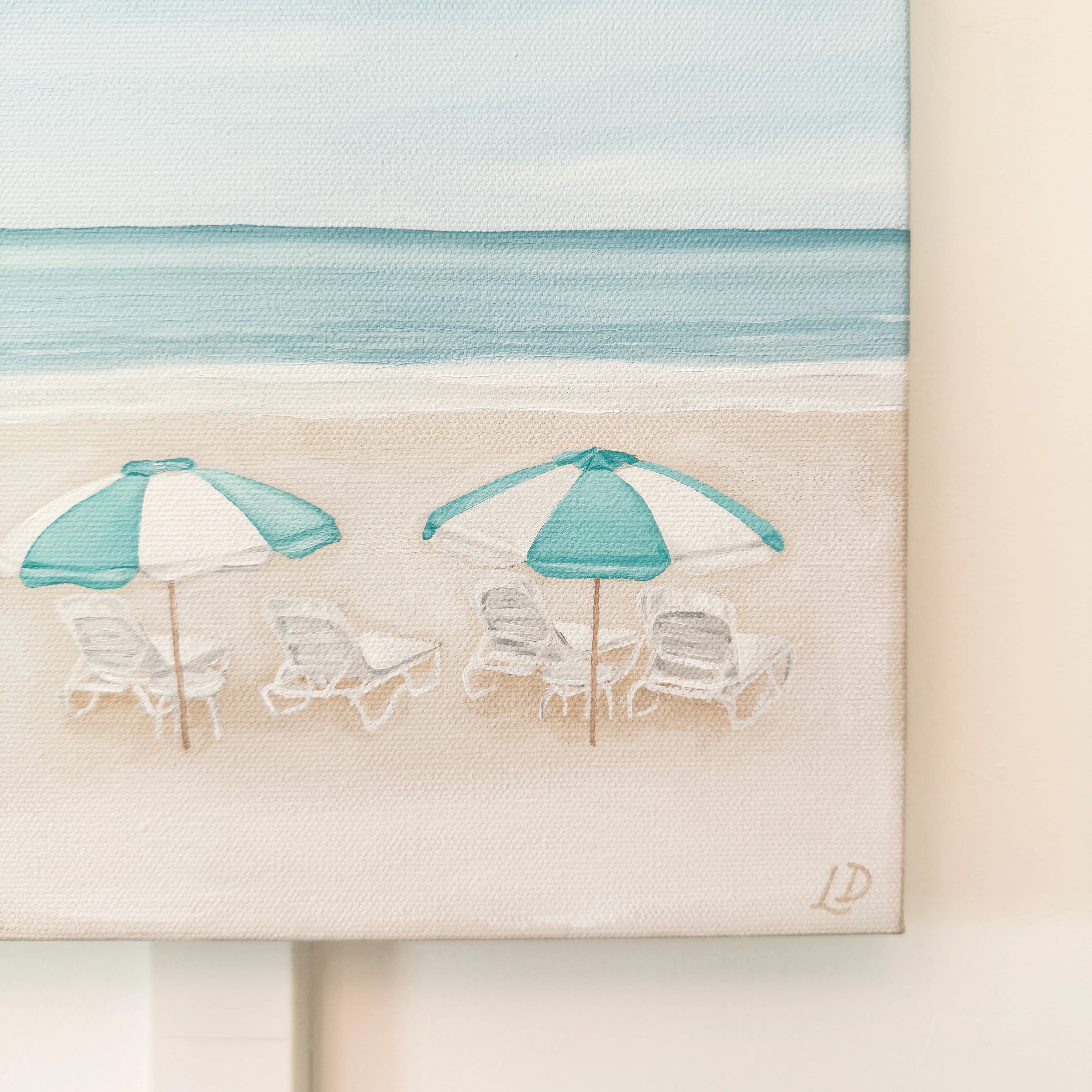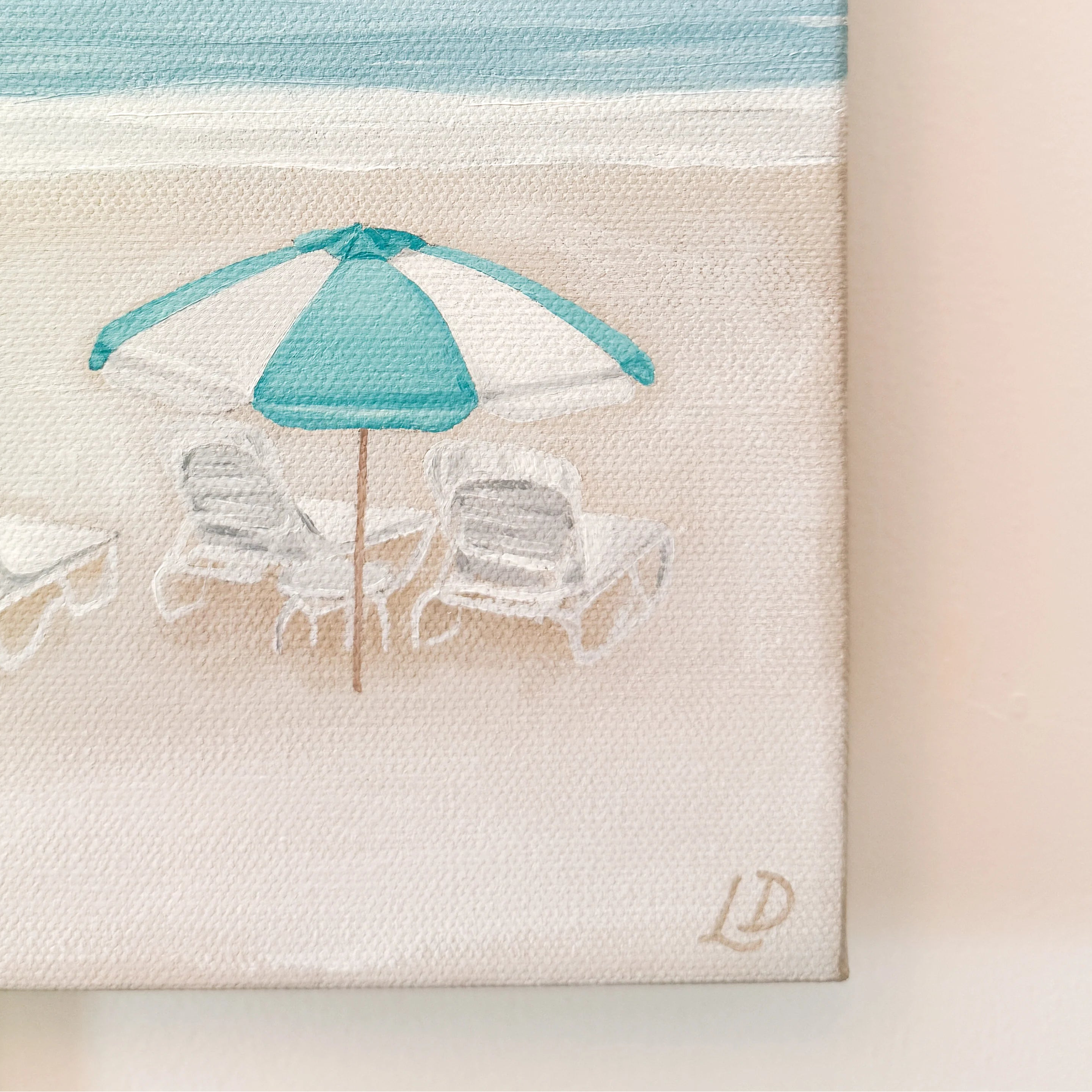 Introducing Harbour Island Retreat - a serene coastal painting inspired by the beloved Dunmore Resort on Harbour Island, Bahamas. With its iconic striped beach umbrellas and soft, sun-washed palette, this piece evokes the gentle rhythm of island living. Perfect for adding a touch of Bahamian magic and relaxed sophistication to bedrooms, living spaces, or any place meant for unwinding.