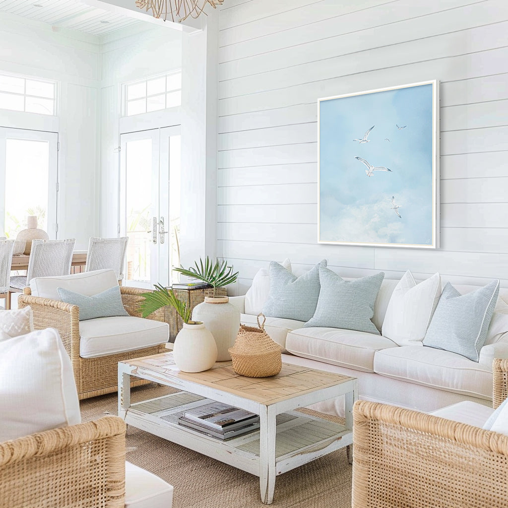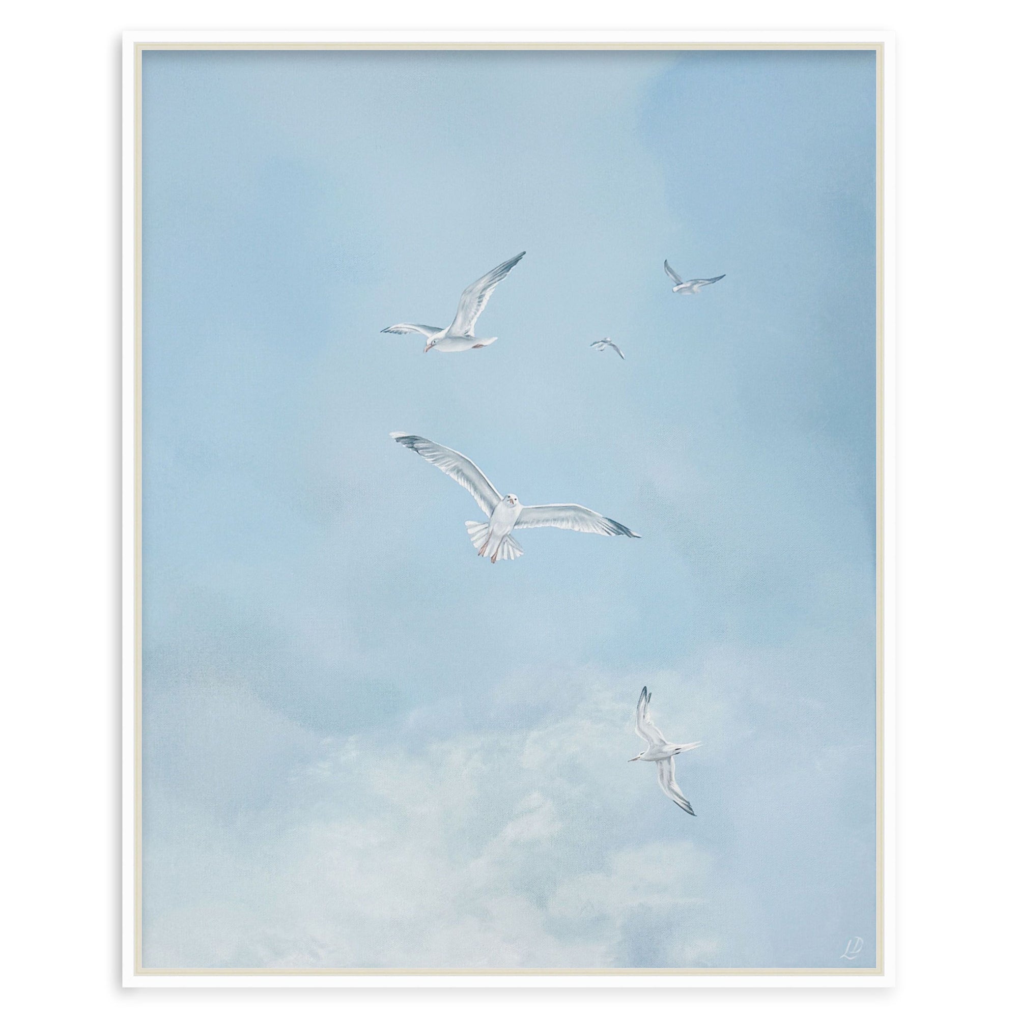 Oil and acrylic painting on a gallery wrapped cotton canvas. Framed in a beautiful white wood floating frame.