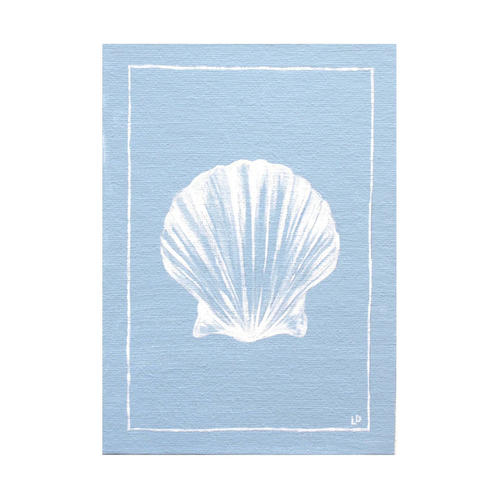 Original acrylic painting 'Petite Scallop Shell on Blue' on canvas panel by artist, Laurie Duncan. Pairs beautifully with 'Petite Seashell' and 'Petite Seashell III'.