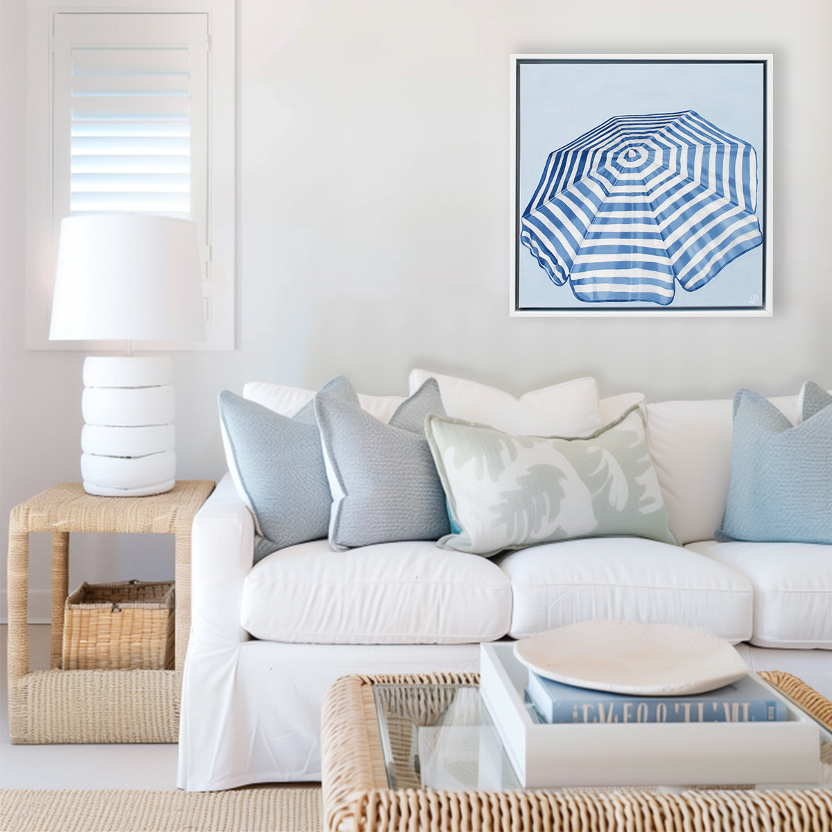 Oil painting on a gallery wrapped cotton canvas framed in a white wood floating frame. Framed locally in South Florida.