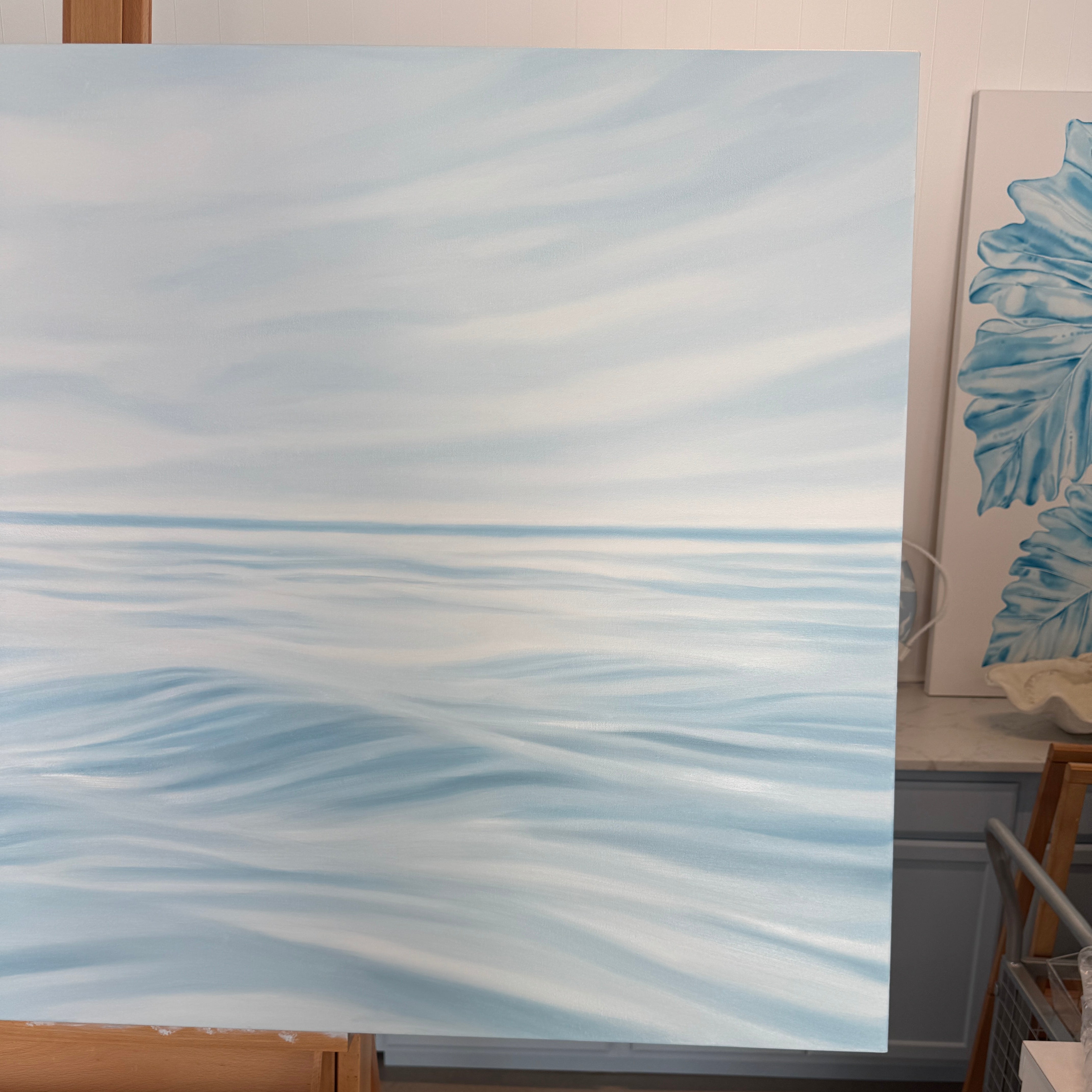 Meet Serenity - a serene 60 x 36” oil seascape designed to bring the quiet calm of the open sea indoors. Layers of soft meditative blues create a palette that feels grounding and peaceful...perfect for anyone who finds their peace out on the water.