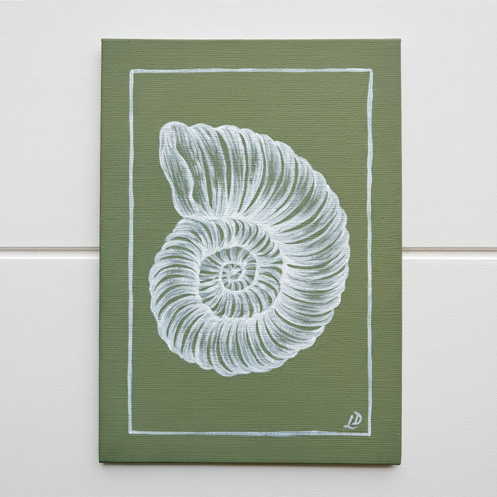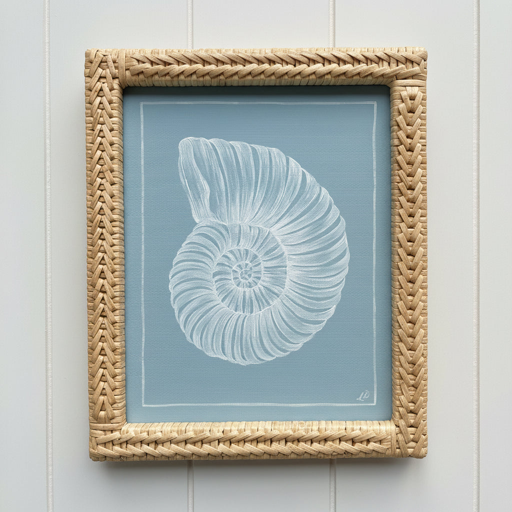 'Nautilus Shell on Dusty Blue No.1' Framed Original Painting