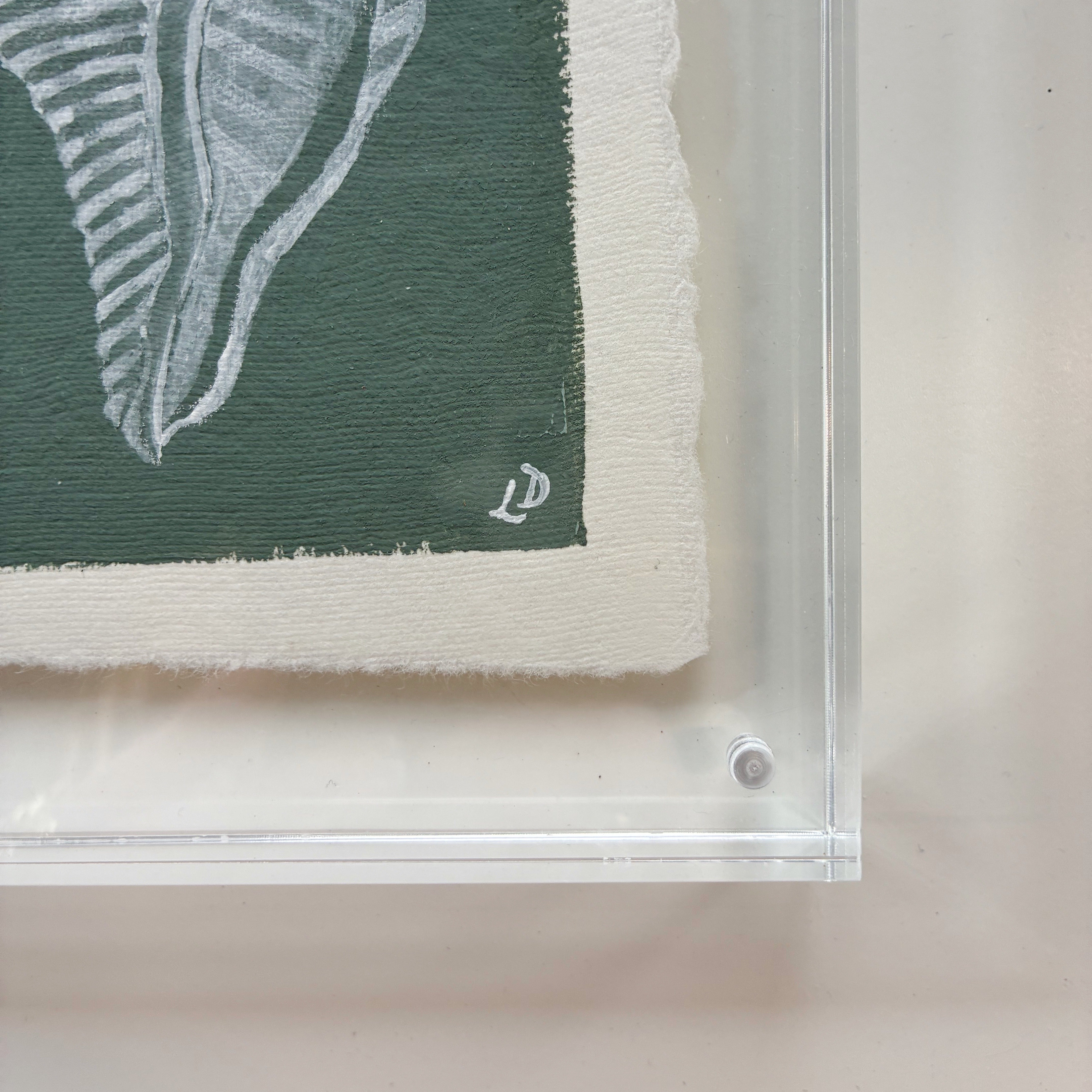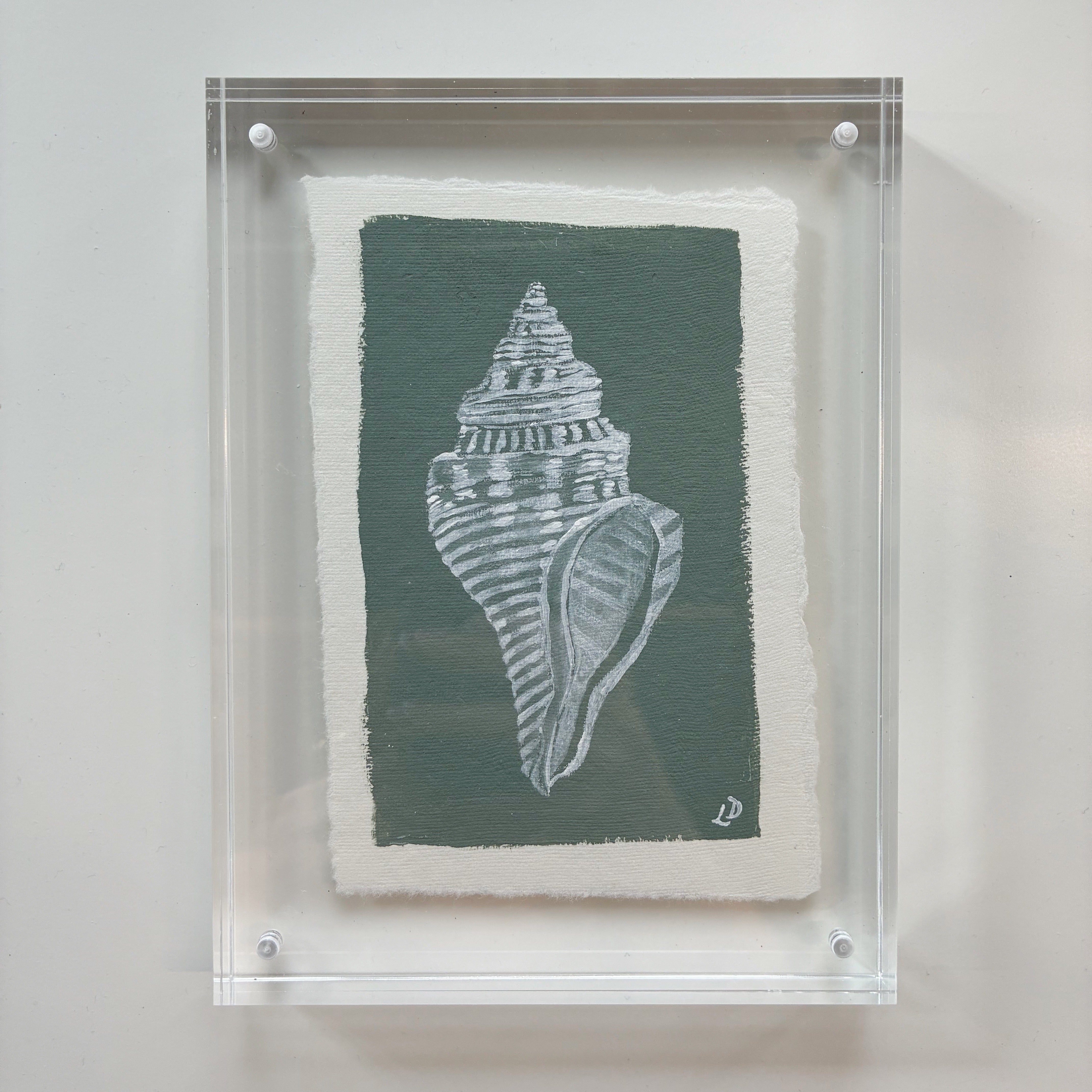 Meet Murex Shell on Southern Green - an original acrylic painting on handmade deckled edge paper, framed in an 6x8" acrylic block frame . Its soft southern green tones and hand-painted shell bring effortless coastal style to any room.