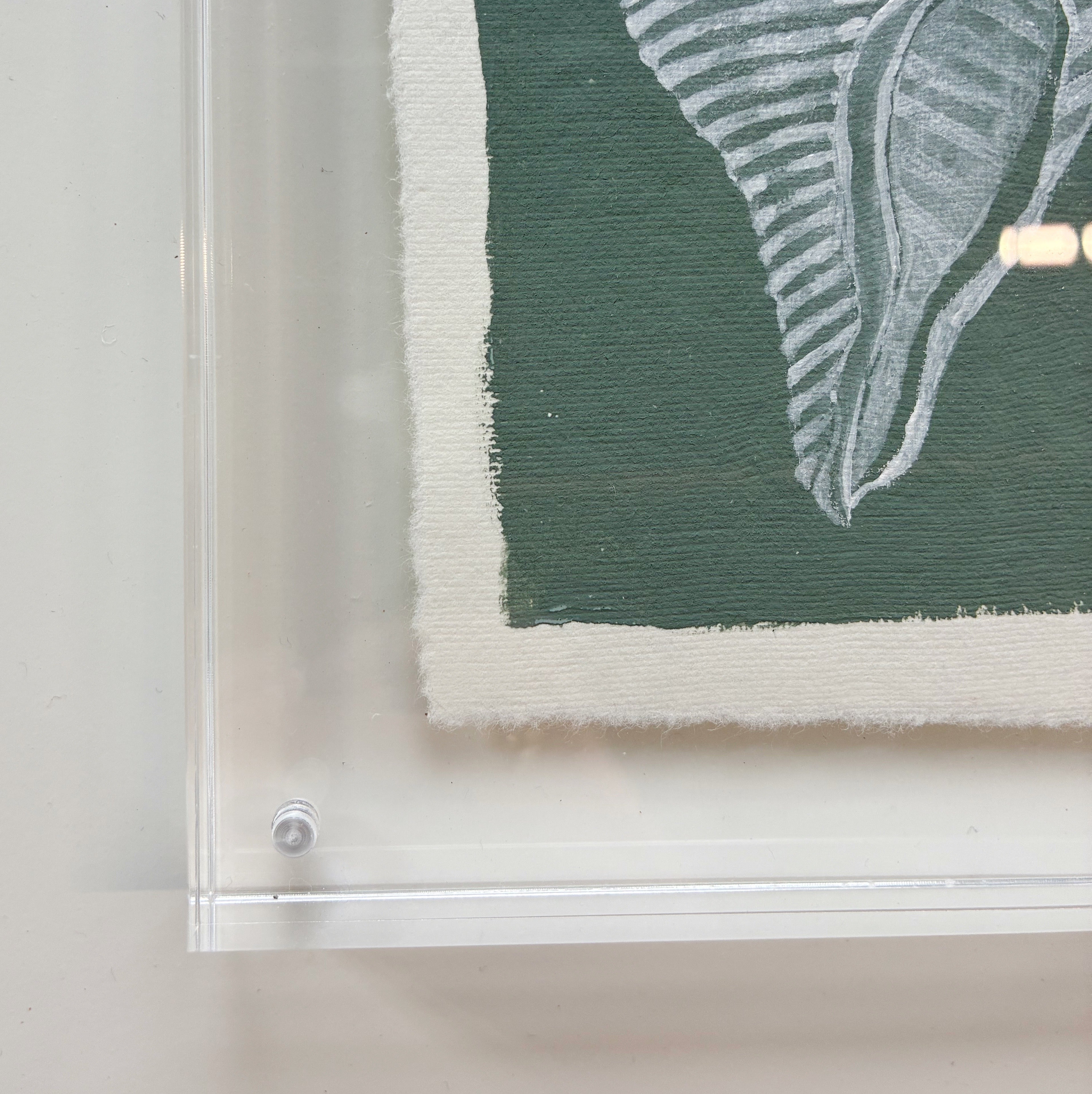 Medium: acrylic on deckled edge handmade paper, framed in an acrylic block frame