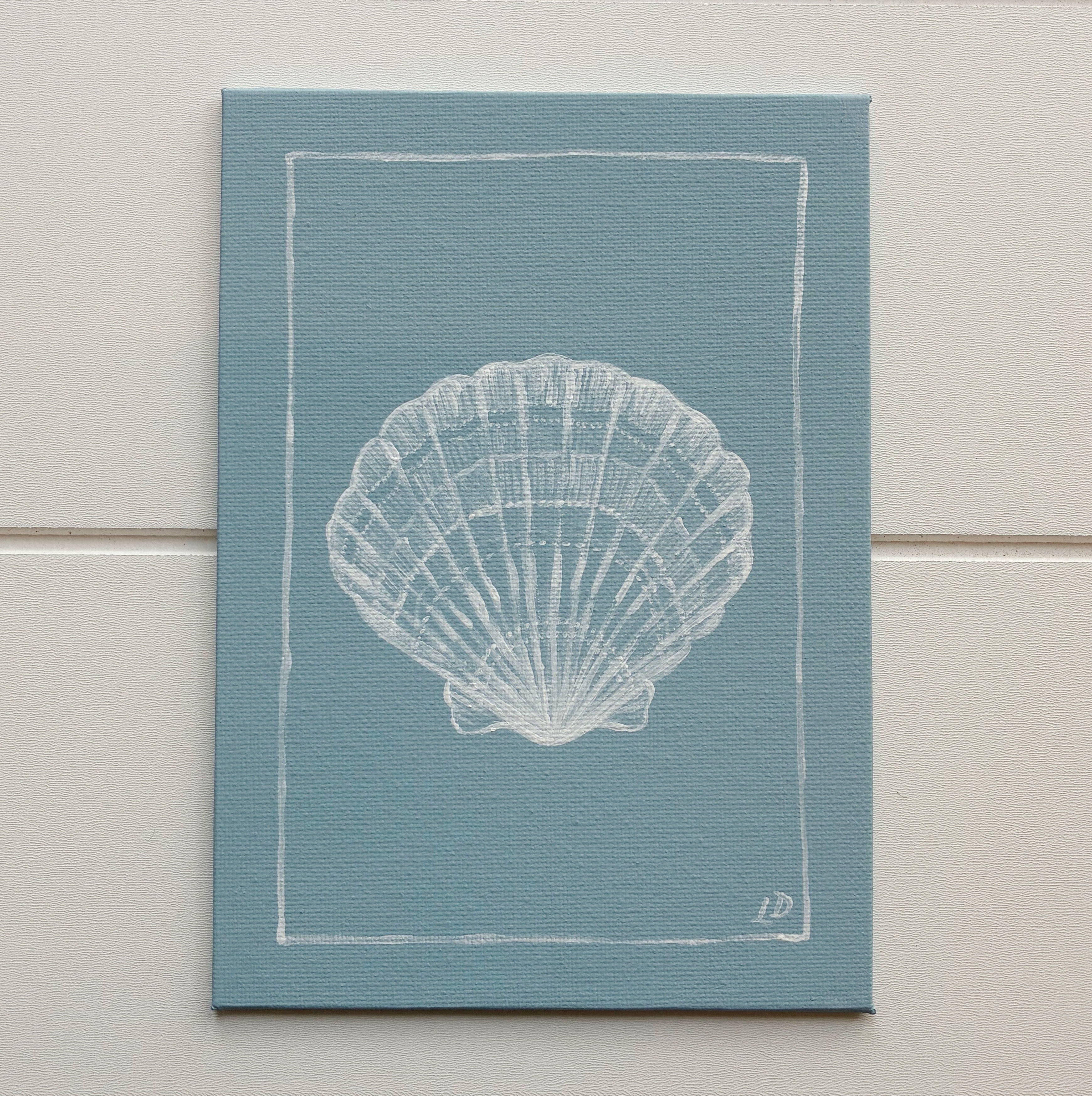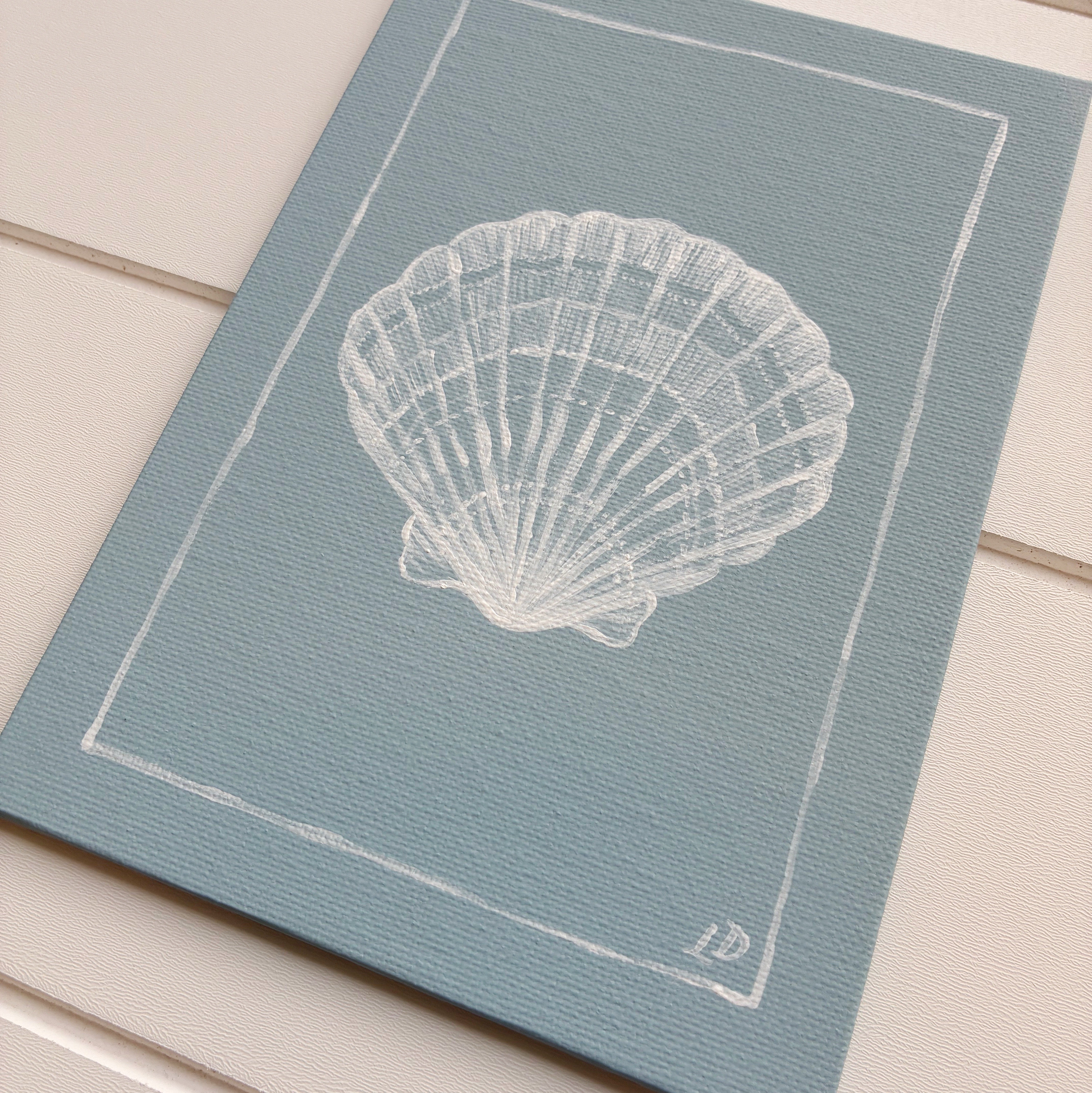 'Scallop Shell on Dusty Blue No.3' Original Painting