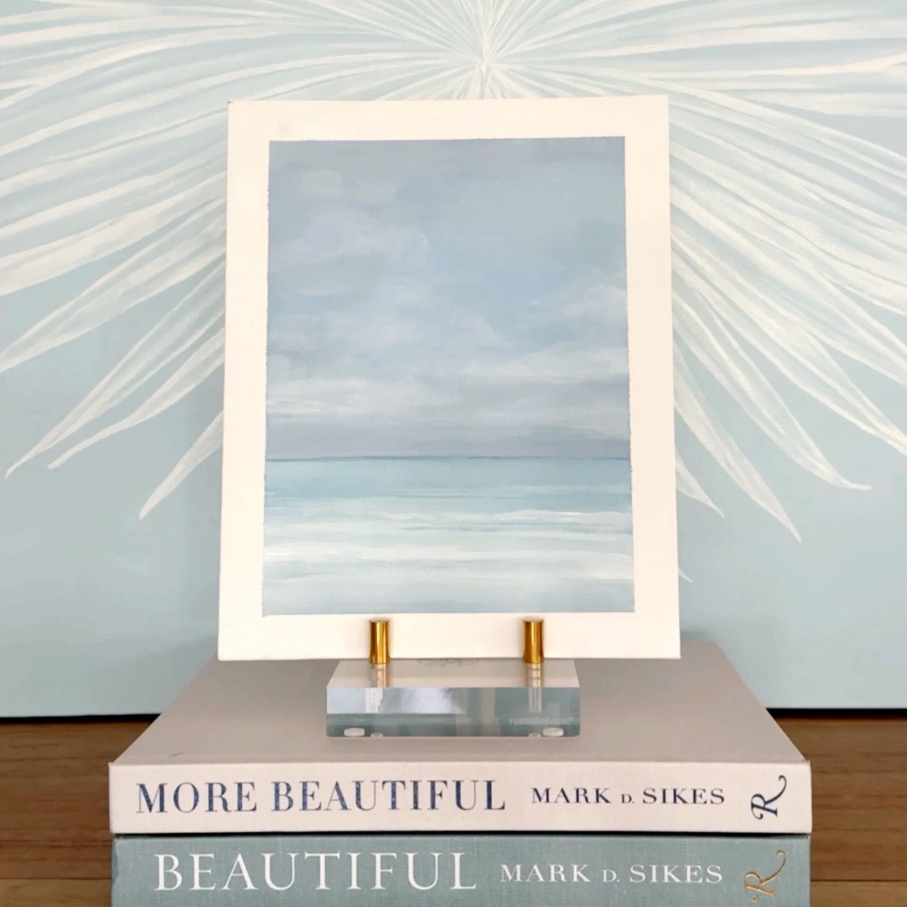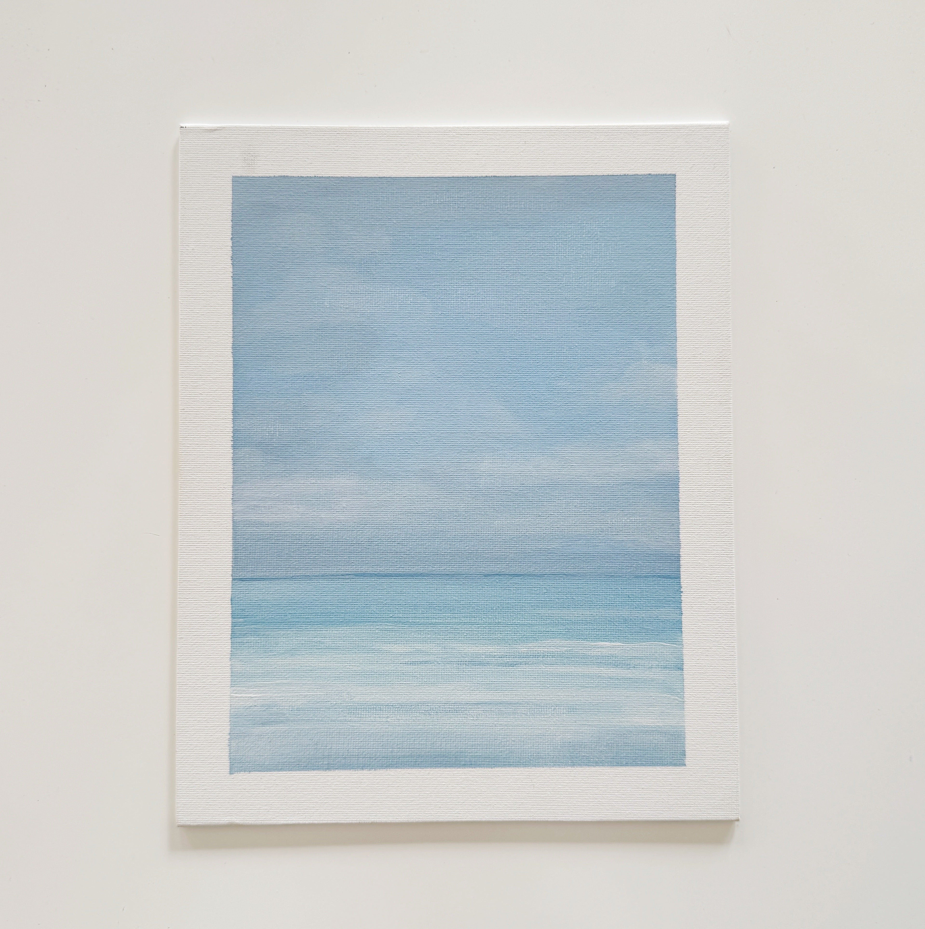 Original acrylic painting, 'Serene Horizon,' created by artist Laurie Duncan. Painted en plein air during Laurie's recent trip to the stunning Cornish coast, this piece captures the crystal-clear waters that make Cornwall an artist's dream destination.