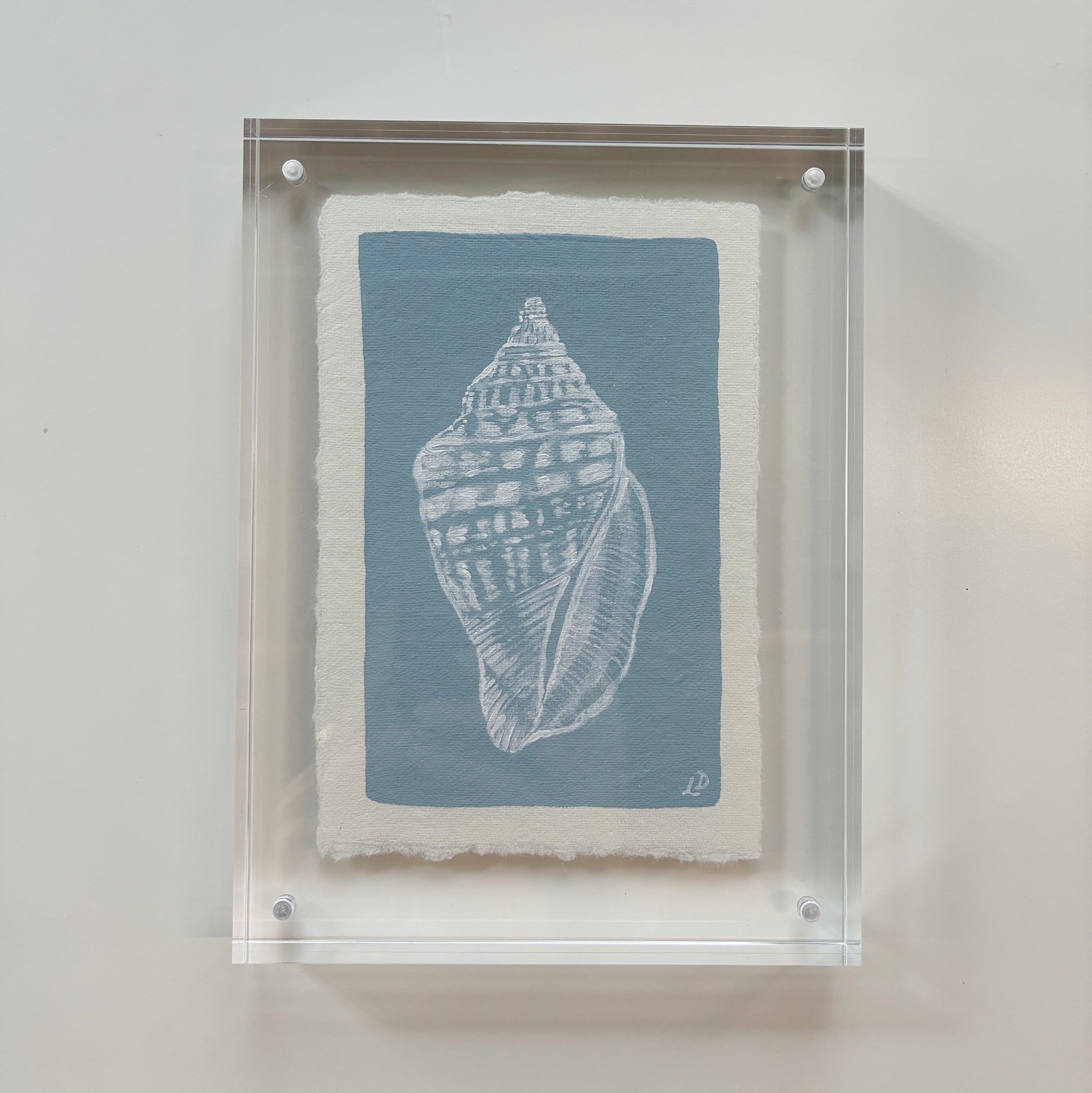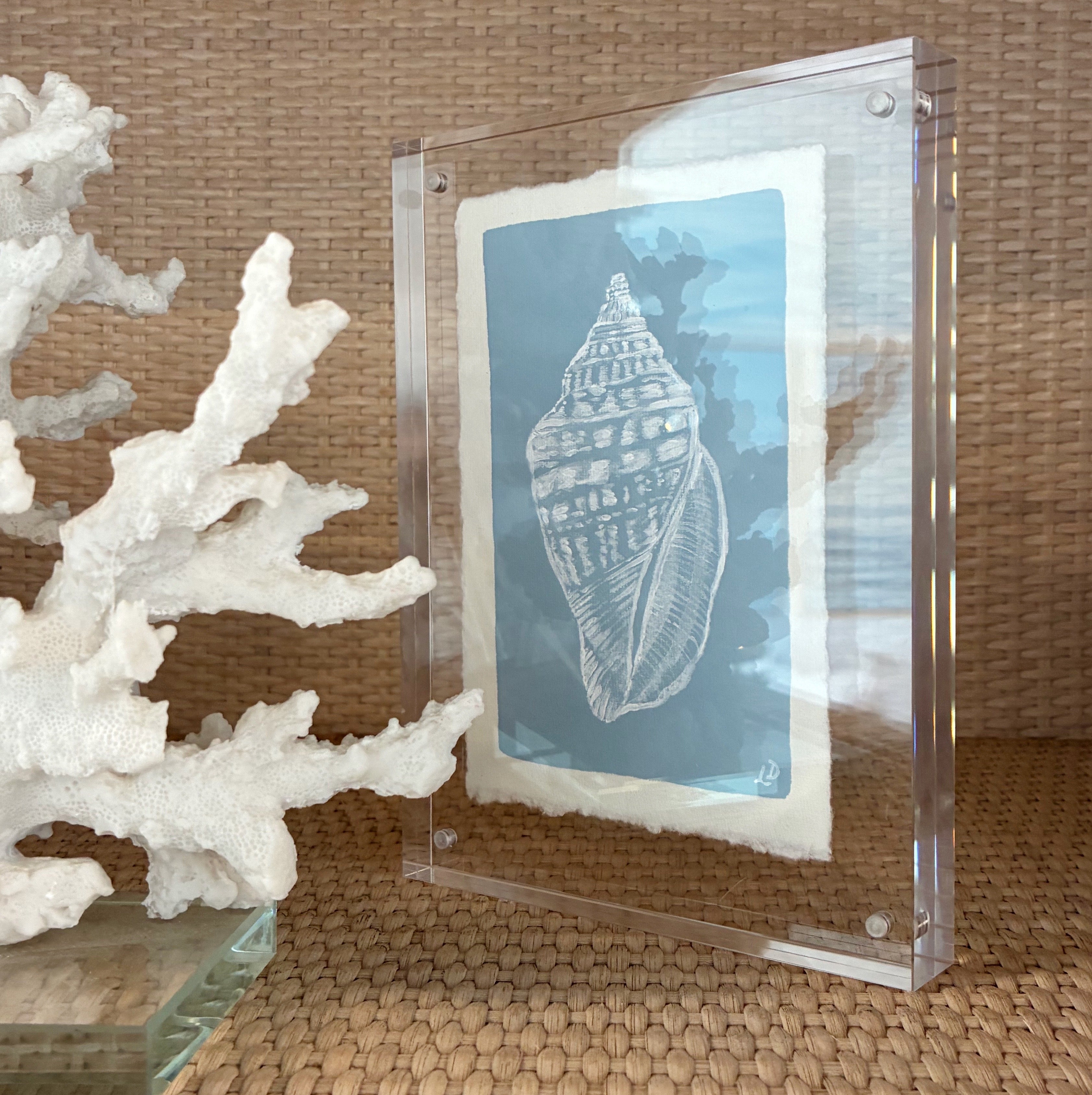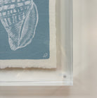 Meet Tulip Shell on Dusty Blue No.1 - an original acrylic painting on handmade deckled edged paper, framed in an 6x8" acrylic block frame . Its soft dusty blue tones and hand-painted tulip shell bring effortless coastal style to any room.
